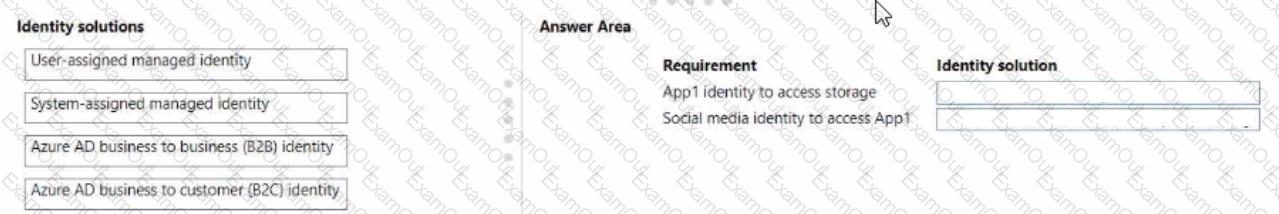 What should you use? To answer, drag the appropriate identity solution to the correct requirement. Each identity solution may be used once, more than once, or not at all. You may need to drag the split bar between panes or scroll to view content.