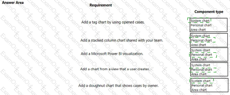 You need to create a dashboard that displays information on help desk cases that ate handled each week. Which dashboard components should you use? To answer, select the appropriate options in the answer area. NOTE: Each correct selection is worth one point.