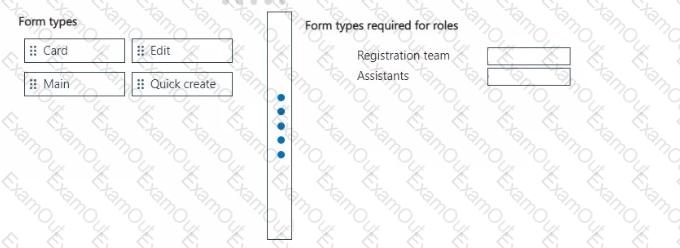 Which form types should you create? To answer, move the appropriate form types to the correct roles. You may use each form type once, more than once, or not at all. You may need to move the split bar between panes or scroll to view content.