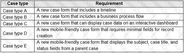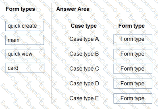 Which form types should you create? To answer, drag the appropriate form types to the meet the data entry requirements. Each source may be used once, more than once, or not at all. You may need to drag the split bar between panes or scroll to view content.