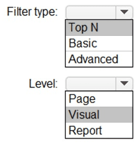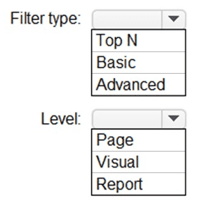 Which type of filter should you use, and at which level should you apply the filter? To answer, select the appropriate options in the answer area.