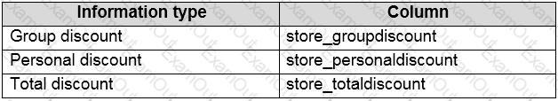 The store offers discounts for customers. You assign a group discount to all customers in a category. Applicable group discounts are added to any customer-specific discounts. Discount information is stored in the following columns: