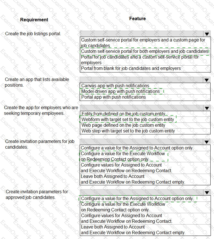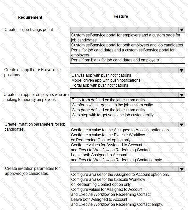 The company wants to eliminate manual work that relates to job and candidate management. The company plans to invite employers with available jobs and job candidates to view jobs by sending personalized invitations. The company identifies the following requirements: