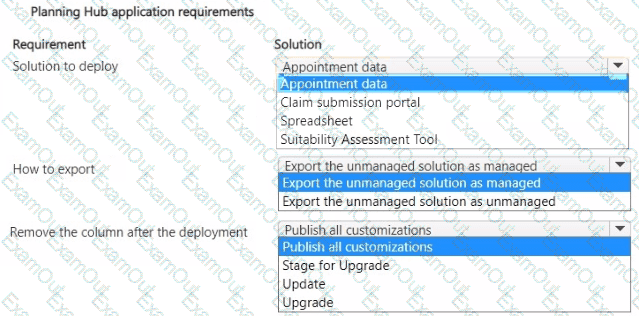 You need to deploy the changes and resolve the issue with the Planning Hub application. What should you use? To answer, select the appropriate options in the answer area.