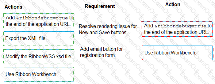 Which business rule actions should you use? To answer, drag the appropriate business rule actions to the correct fields. Each business rule action may be used once, more than once, or not at all. You may need to drag the split bar between panes or scroll to view content.