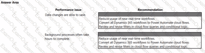 You are conducting performance testing for a Microsoft Power Platform solution. The solution uses Power Automate cloud flows to query and synchronize data across 10 different tables based on various criteria. You make the following observations: