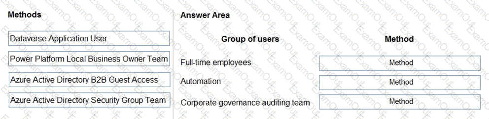 What should you recommend? To answer, drag the appropriate methods to the correct groups of users. Each method may be used once, more than once, or not at all. You may need to drag the split bar between panes or scroll to view content.
