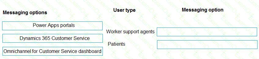 What should you recommend? To answer, drag the appropriate messaging options to the correct user types. Each messaging option may be used once, more than once, or not at all. You may need to drag the split bar between panes or scroll to view content.