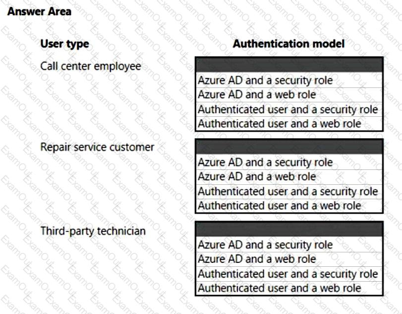 You are designing a Microsoft Power Platform solution for a national repair service. The service has a 24-hour call center for customers to call and schedule repairs.
