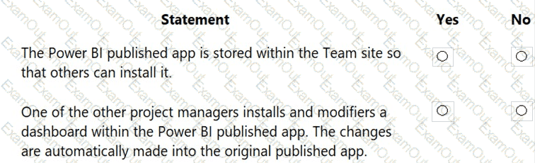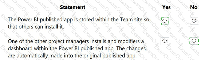 You create reports within Power BI to report on the status of a project. A manager asks you to share the reports with other team members. You decide to create a published app and set permissions to allow other team members to view the reports.