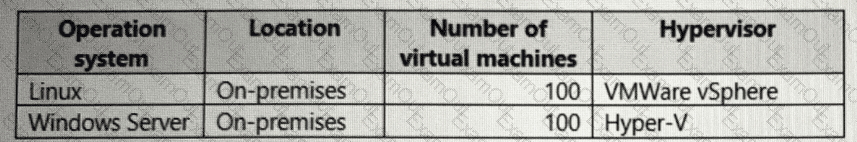 Your company has the virtual machine infrastructure shown in the following table.