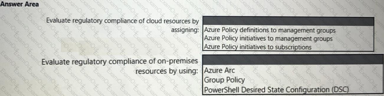 You need to recommend a solution to evaluate regulatory compliance across the entire managed environment. The solution must meet the regulatory compliance requirements and the business requirements.