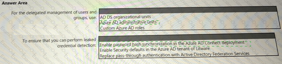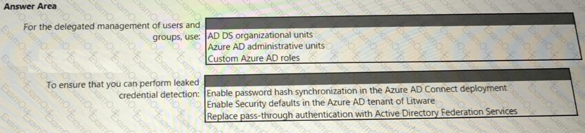 You need to recommend a multi-tenant and hybrid security solution that meets to the business requirements and the hybrid requirements. What should you recommend? To answer, select the appropriate options in the answer area. NOTE: Each correct selection is worth one point.