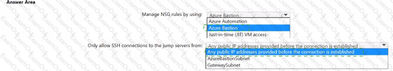 You plan to deploy a dynamically scaling, Linux-based Azure Virtual Machine Scale Set that will host jump servers. The jump servers will be used by support staff who connect from personal and kiosk devices via the internet. The subnet of the jump servers will be associated to a network security group (NSG).
