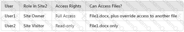 How many files in Site2 can User1 and User2 access after you turn on DLPpolicy1? To answer, select the appropriate options in the answer area.