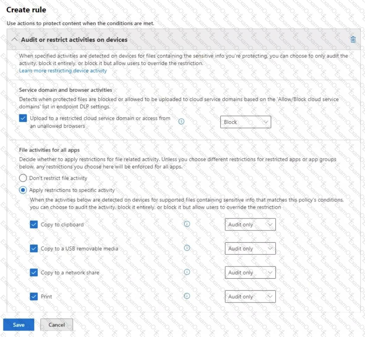 You have a data loss prevention (DLP) policy configured for endpoints as shown in the following exhibit.