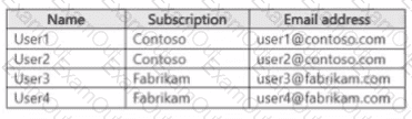 You have two Microsoft 365 subscriptions named Contoso and Fabrikam. The subscriptions contain the users shown in the following table.