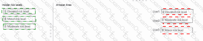 Which insider risk level is assigned to each user? To answer, drag the appropriate levels to the correct users. Each level may be used once, more than once, or not at all. You may need to drag the split bar between panes or seroll to view content.