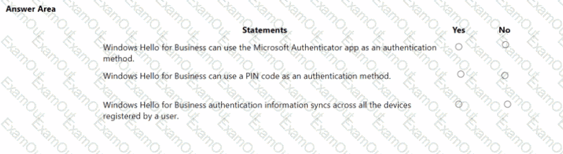 For each of the following statements, select Yes if the statement is true. Otherwise, select No. NOTE: Each correct selection is worth one point.