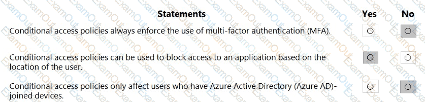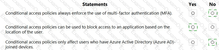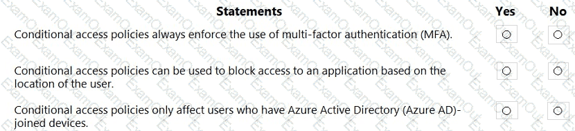 For each of the following statements, select Yes if the statement is true. Otherwise, select No.