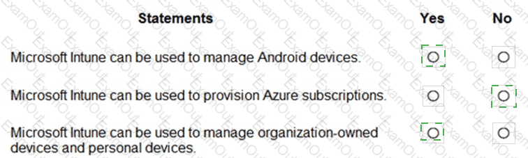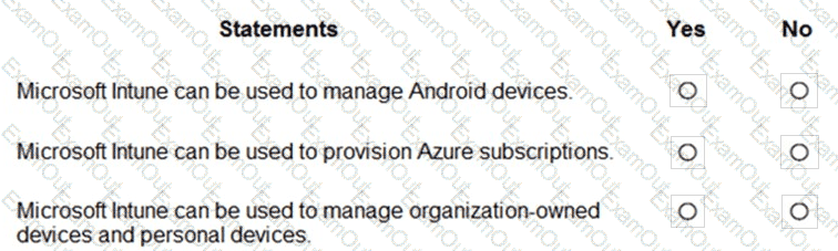 For each of the following statements, select Yes if the statement is true. Otherwise, select No.