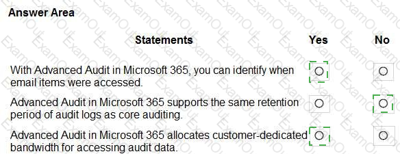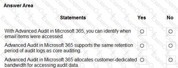For each of the following statements, select Yes if the statement is true. Otherwise, select No.