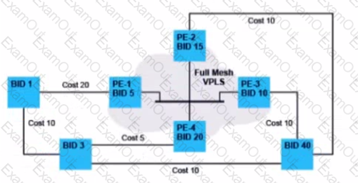 Click the exhibit button below. Traffic arriving at router PE 1 is marked with a dot1p value of 4. Given the network policies applied on the routers in the diagram below, what is the EXP value of packets arriving at router PE 2?