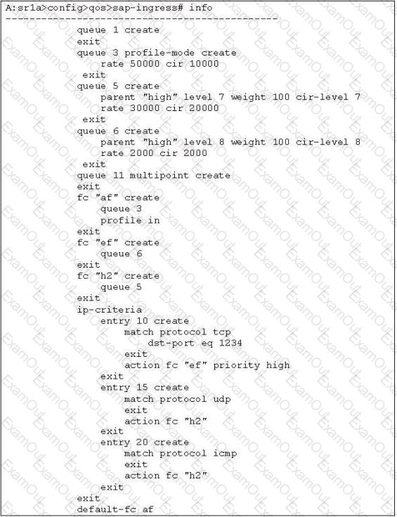 Click the exhibit button below. Given the SAP-ingress policy, which of the following statements are TRUE? (Choose three)