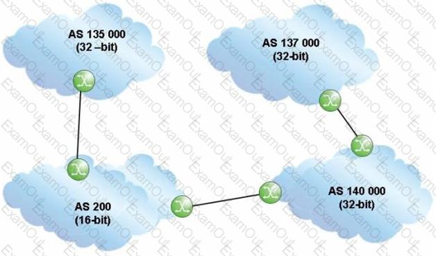 An update travels from AS 137000 to AS 135000, traversing both 32-bit and 16-bit AS Paths.