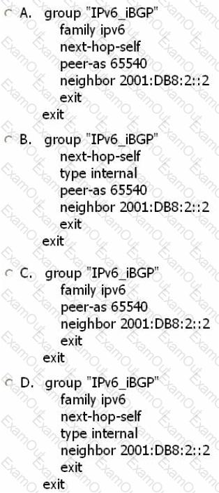 Assume all router-IDs are properly configured. Which of the following configurations is required on the Alcatel-Lucent 7750 SR router A to establish an IPv6 BGP session to router D?