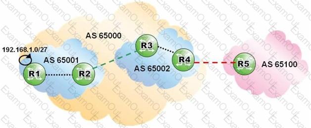 Router R1 is advertising prefix 192.168.1.0/27 with community "no-export. Which routers will receive an update for that prefix?