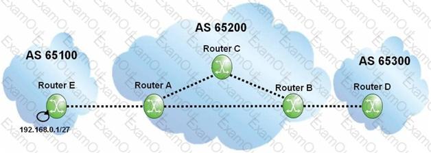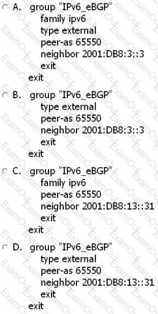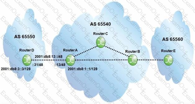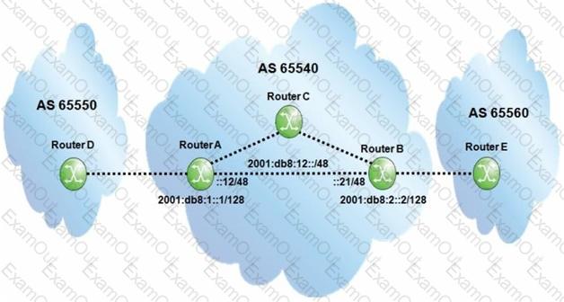 Assume all router-IDs are properly configured, and link-local IPv6 addresses are used to establish the eBGP sessions. Which of the following is the MINIMAL configuration required on router A so that router B can exchange traffic with router D?
