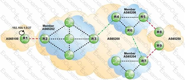 AS 65100 is advertising 192.168.1.0/27 into BGP. Which of the following AS Paths would the prefix 192.168.1.0/27 contain when viewed on router R7?