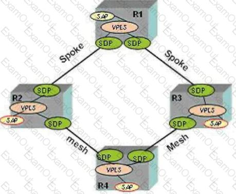 You have been requested to add load balancing across the redundant spoke-SDPs in the network shown. What further configuration is required? (Choose 2)