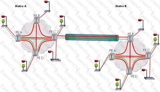 If the device connected to PE-A in Metro A sends a frame to PE-A that requires replication within the VPLS which devices is PE-A responsible for replicating the frame to?