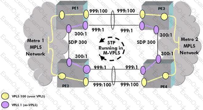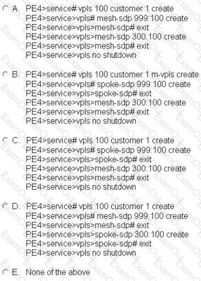 Study the network diagram. Which of the following configurations is correct for user VPLS 100 on PE4?