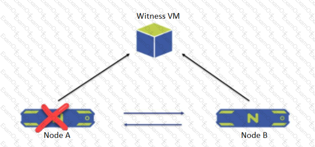 A two-node ROBO cluster is configured with a witness VM.