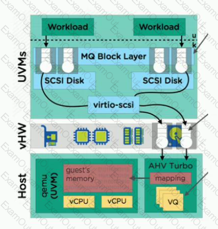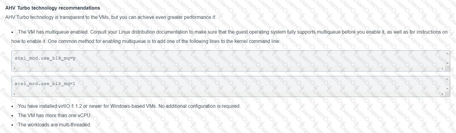 An administrator has an existing cluster and needs to improve performance using AHV Turbo. Which two items are required to achieve even greater performance? (Choose two.)