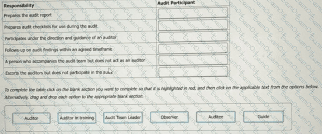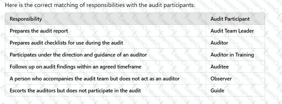 Match the correct responsibility with each participant of a second-party audit: