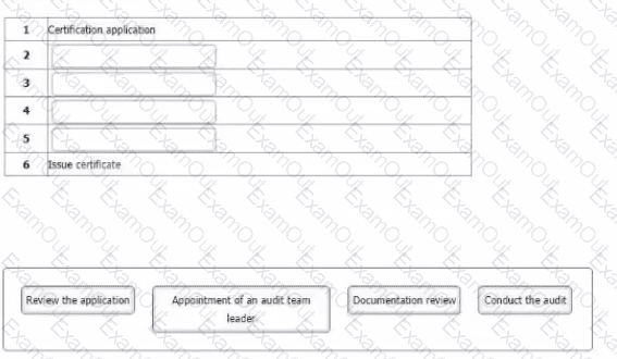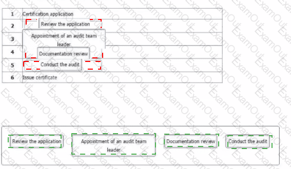 The following options show key actions involved in a third-party audit. They are not in order. Order the stages in the table to show the sequence in which the actions should take place.
