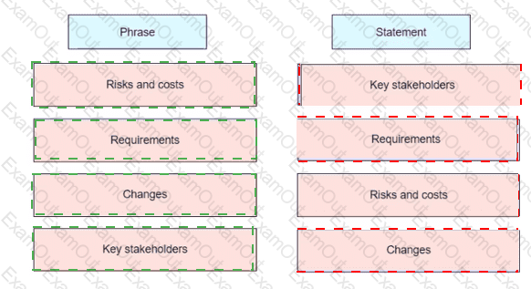 A project manager is working on a complex project and is unsure about planning, executing, monitoring and controlling the project. Match the phrase on the left with the correct statement on the right.