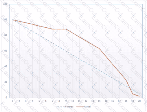A team Is experiencing difficulties and has decided to use a spike. Please click on the portion of the burndown chart that corresponds to the spike.
