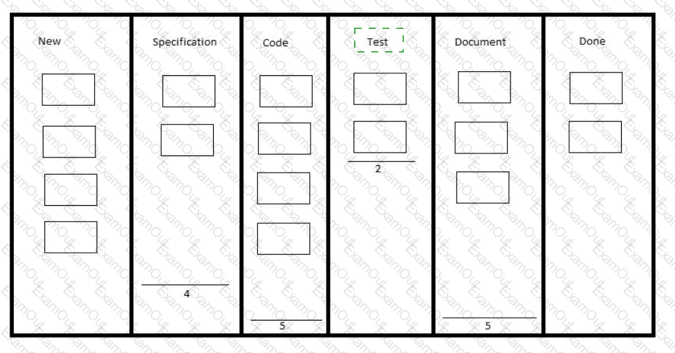 A project manager receives an update that the development flow is not going well. Some team members cannot start their work because the delivery is late. Looking at the Kanban board and the work in progress (WIP) lines, the project manager observes a bottleneck.