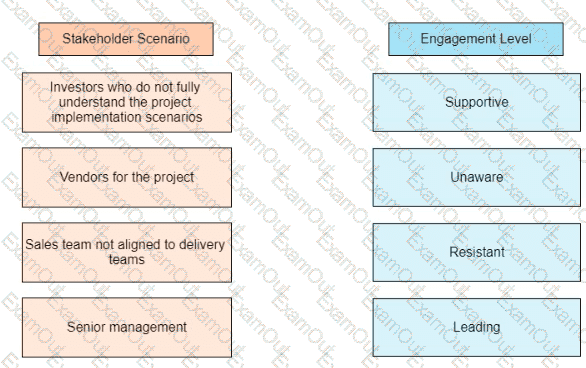 Drag each stakeholder scenario on the left to the correct engagement level on the right.