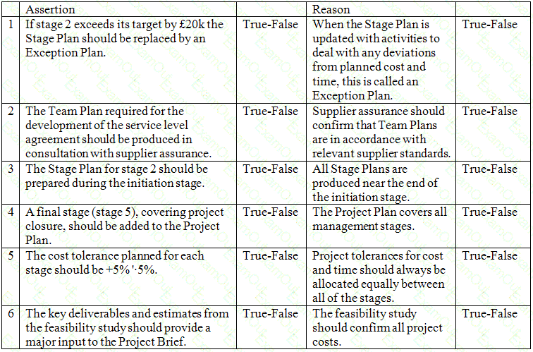 Lines 1 to 6 in the table below consist of an assertion statement and a reason statement. For each line identify the appropriate option, from options A to E, that applies. Each option can be used once, more than once or not at all.
