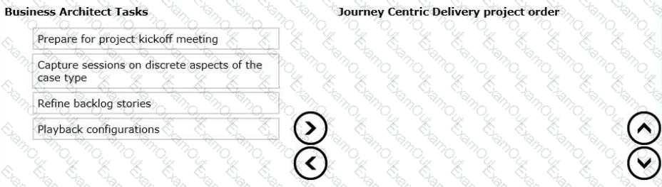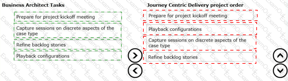 Select and move the Business Architect tasks to the Journey Centric Delivery project order column and place them in the correct order.