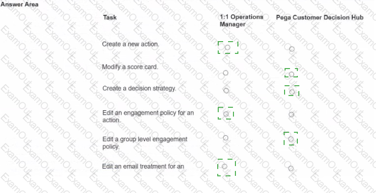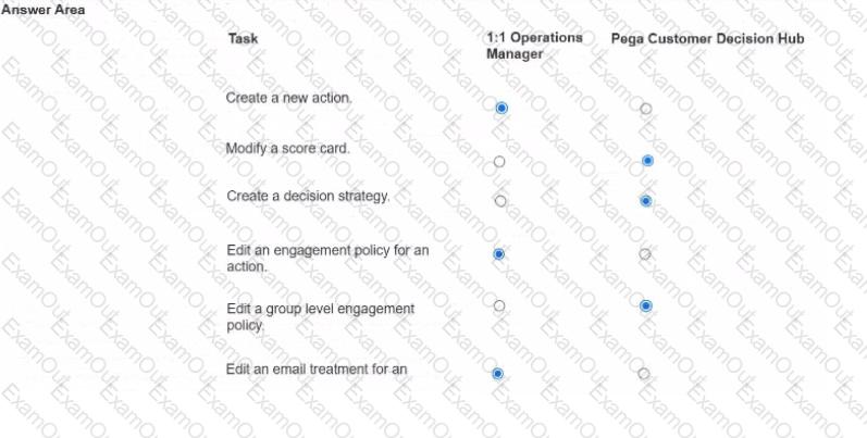 U+ Bank wants to use Pega Customer Decision Hub™ to display a credit card offer, the Standard Card, to every customer who logs in to the bank website. What three of the following artifacts are mandatory to implement this requirement7 (Choose Three)