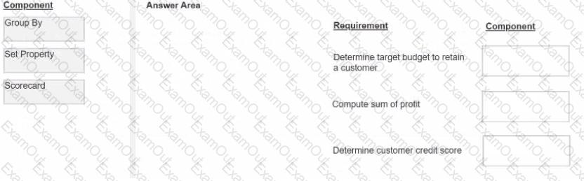 You are a decisioning architect on a next-best-action project and are responsible for designing and implementing decision strategies. Select each component on the leftand drag it to the correct requirement on the right.