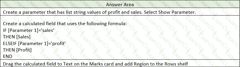 The table must show either profit or sales based on the selection from the Parameter 1 menu.