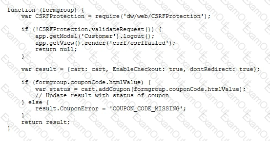 Universal Containers recently completed updates to their storefront shopping cart page. A problem has been discovered since the update. Users are no longer able to submit coupon codes on this page. Additionally, authenticated userswho try to add a coupon are logged out.